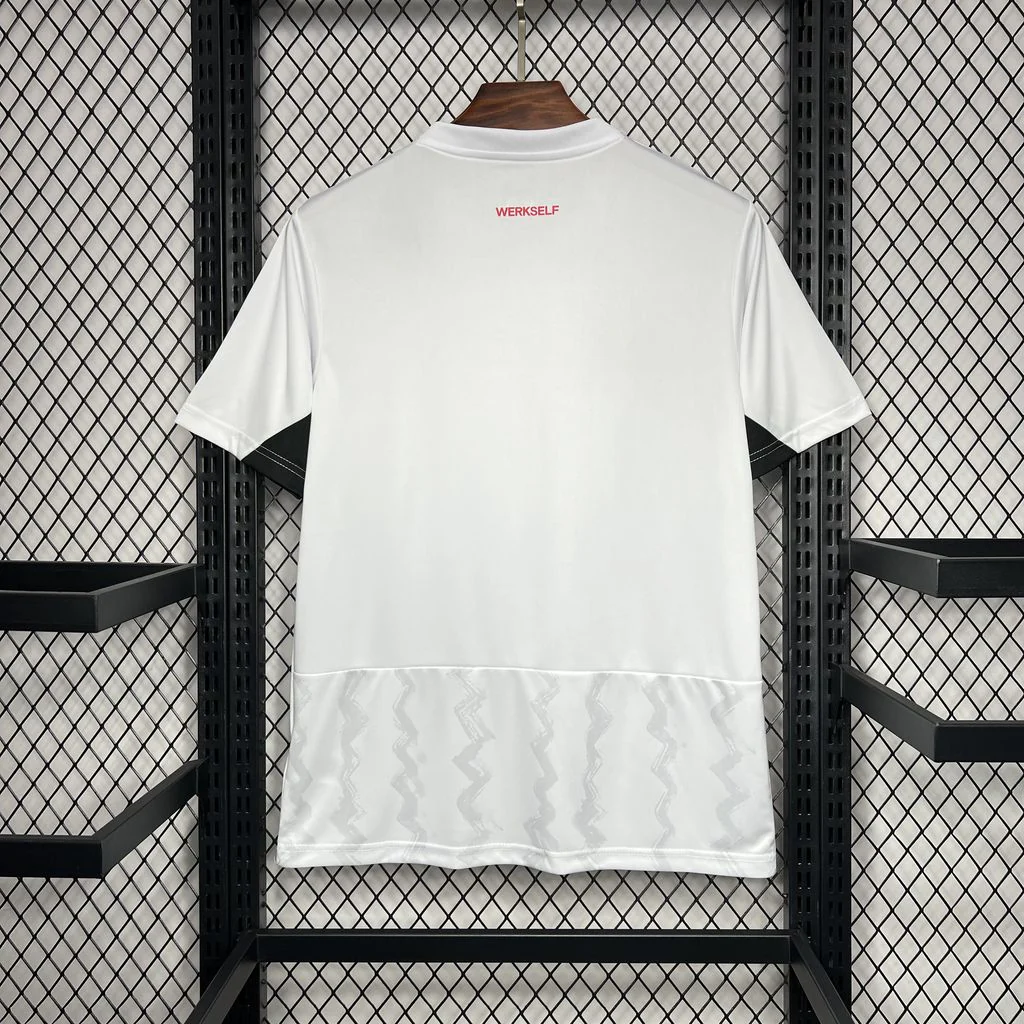 Bayer 04 Leverkusen’s away kit for 2024-25 is crafted to highlight the team’s professionalism and dynamic style. Stars like Florian Wirtz, Nathan Tella, Jeremie Frimpong, and Jonathan Tah lead the squad, making this jersey ideal for fans who follow Bundesliga action closely.